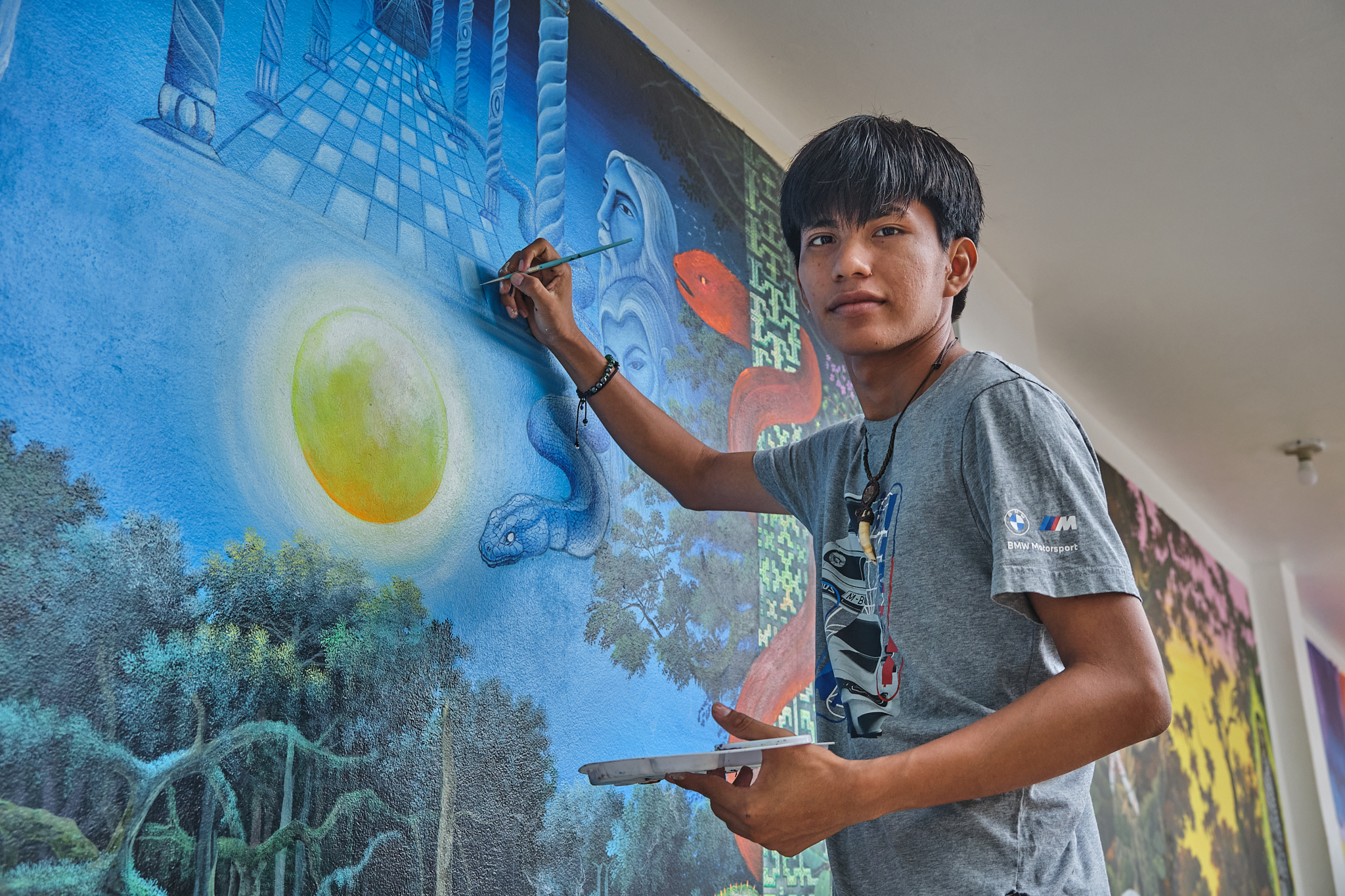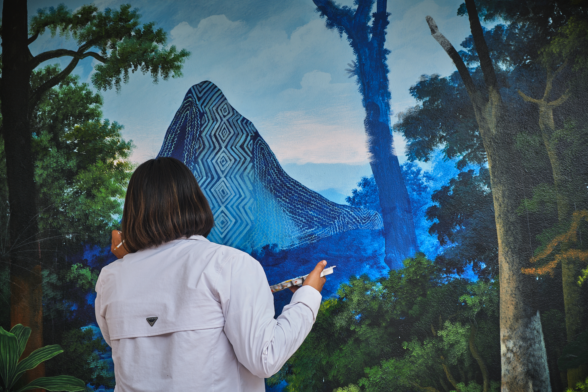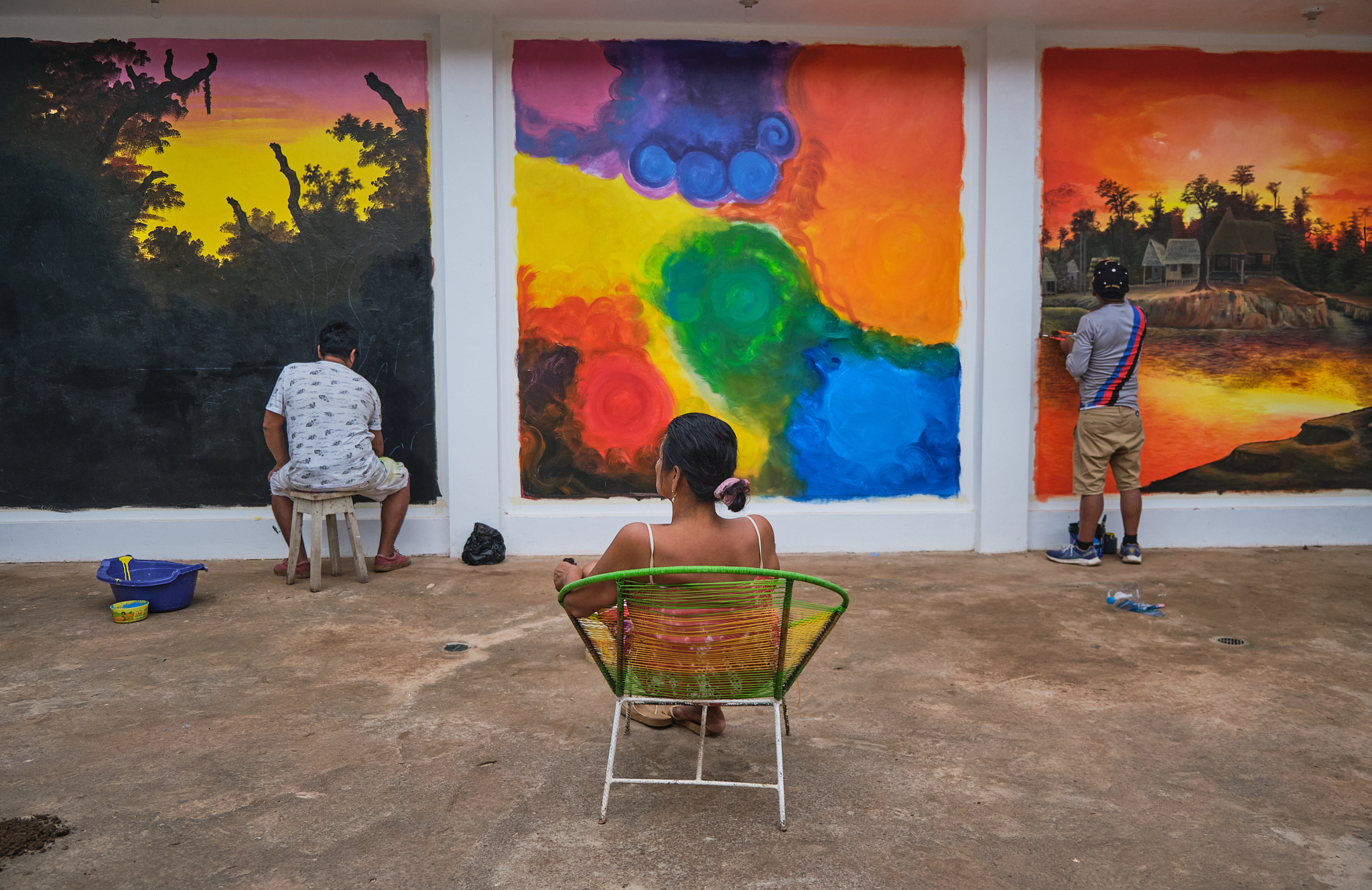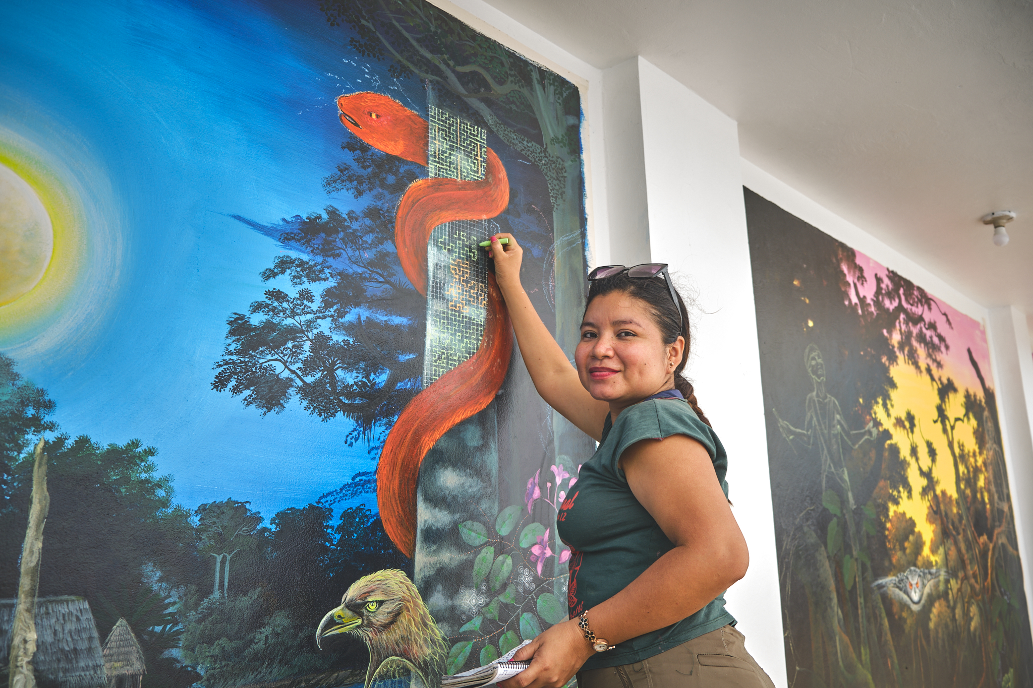 El mural, como conjunto de cinco paisajes distintos, es una transmisión de las culturas y cosmovisiones amazónicas de distintos pueblos indígenas. También contiene una gran cantidad de información sobre la flora y la fauna locales. Con Noe Macedo, identificamos una gran variedad de plantas y árboles, como el toé, el tabaco, el ojé, la bobinsana, el aguaje y muchos más. Esperamos y deseamos que estos murales evoquen admiración, contemplación y un diálogo profundo en todos aquellos que vengan a verlos y los experimenten de cerca.