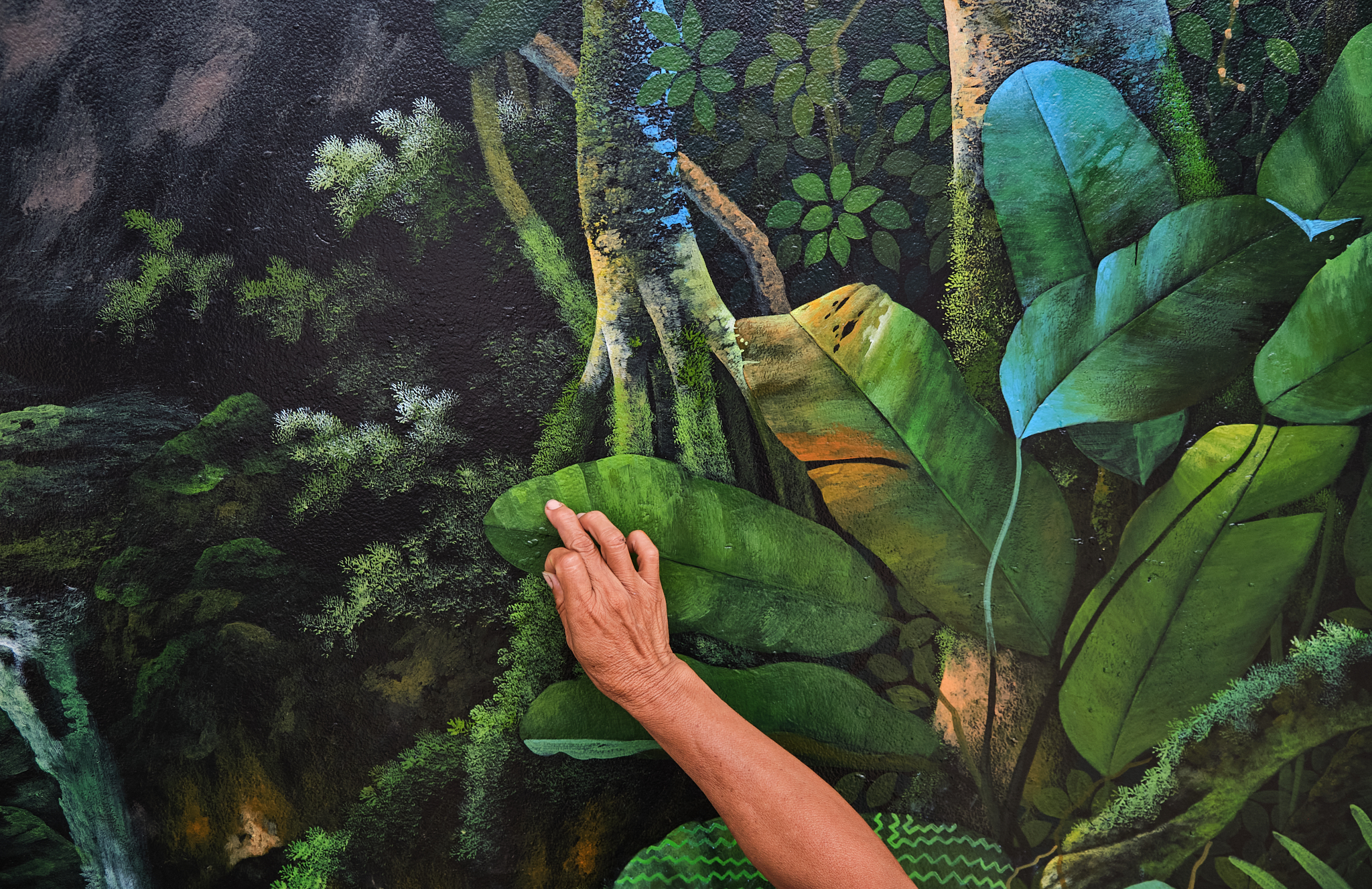 El cuarto segmento del mural es una elaboración de la selva donde crecen su flora y fauna, al tiempo que muestra su conexión con los pueblos del bosque, como los awajún, matsés, shipibo y asheninka. Leidy Panduro Martínez, una reconocida ceramista shipibo, expresó sus diseños kené en una gran cerámica chomo, mientras que la líder asheninka María Elena Paredes pintó los diseños de su pueblo en un vestido tradicional o kushma.