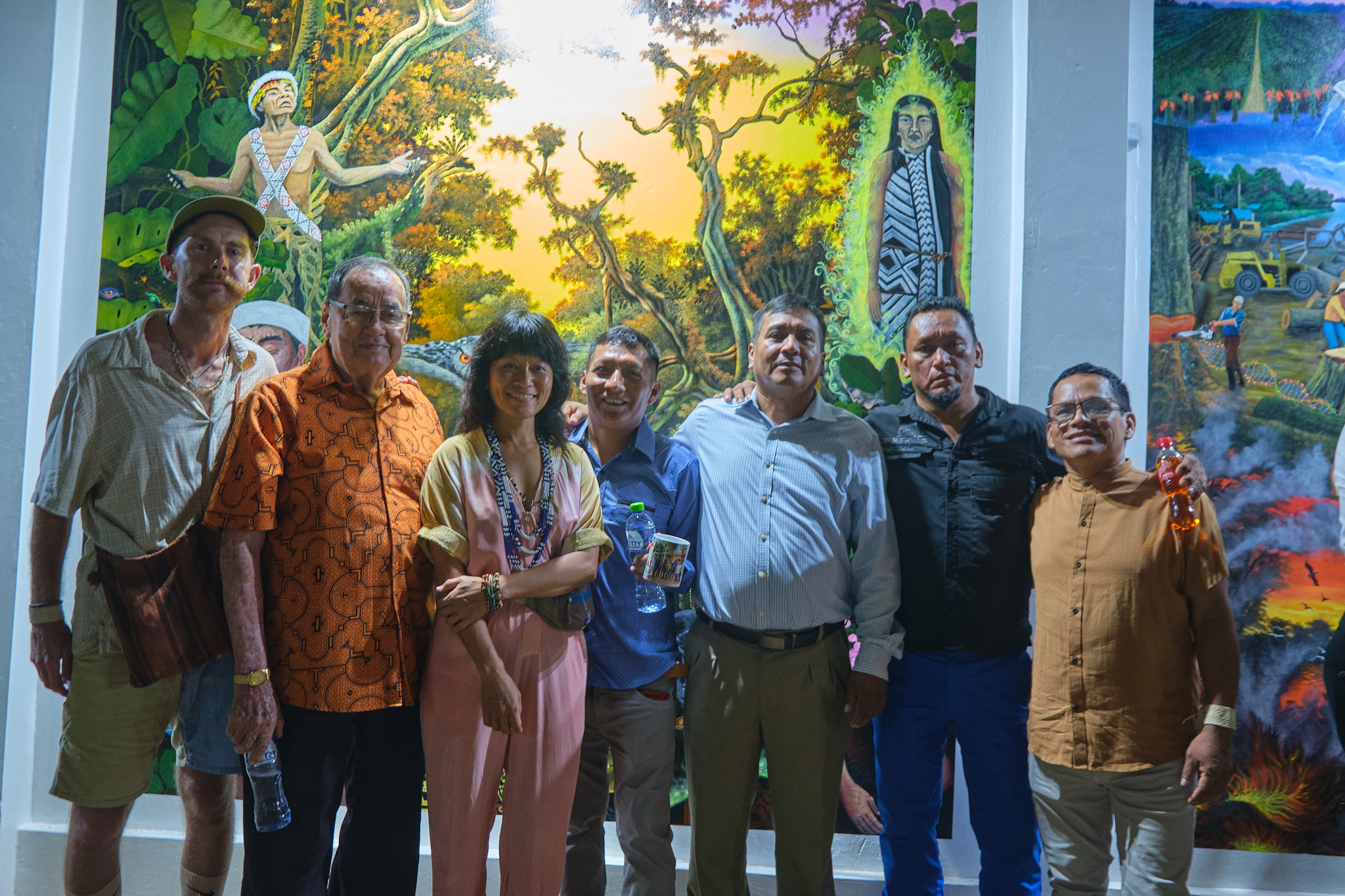 Tras las presentaciones y la proyección de la película, David Amaringo desveló el mural central que muestra las amenazas actuales que se ciernen sobre la Amazonía, dejando una fuerte impresión en los asistentes y poniendo de relieve la dura realidad a la que se enfrenta la región de Ucayali. Y es aquí donde recordamos el mensaje de Pablo Amaringo: que a través de la sabiduría, el conocimiento, la comprensión, el discernimiento y el espíritu, podamos convivir con la naturaleza y respetarla.