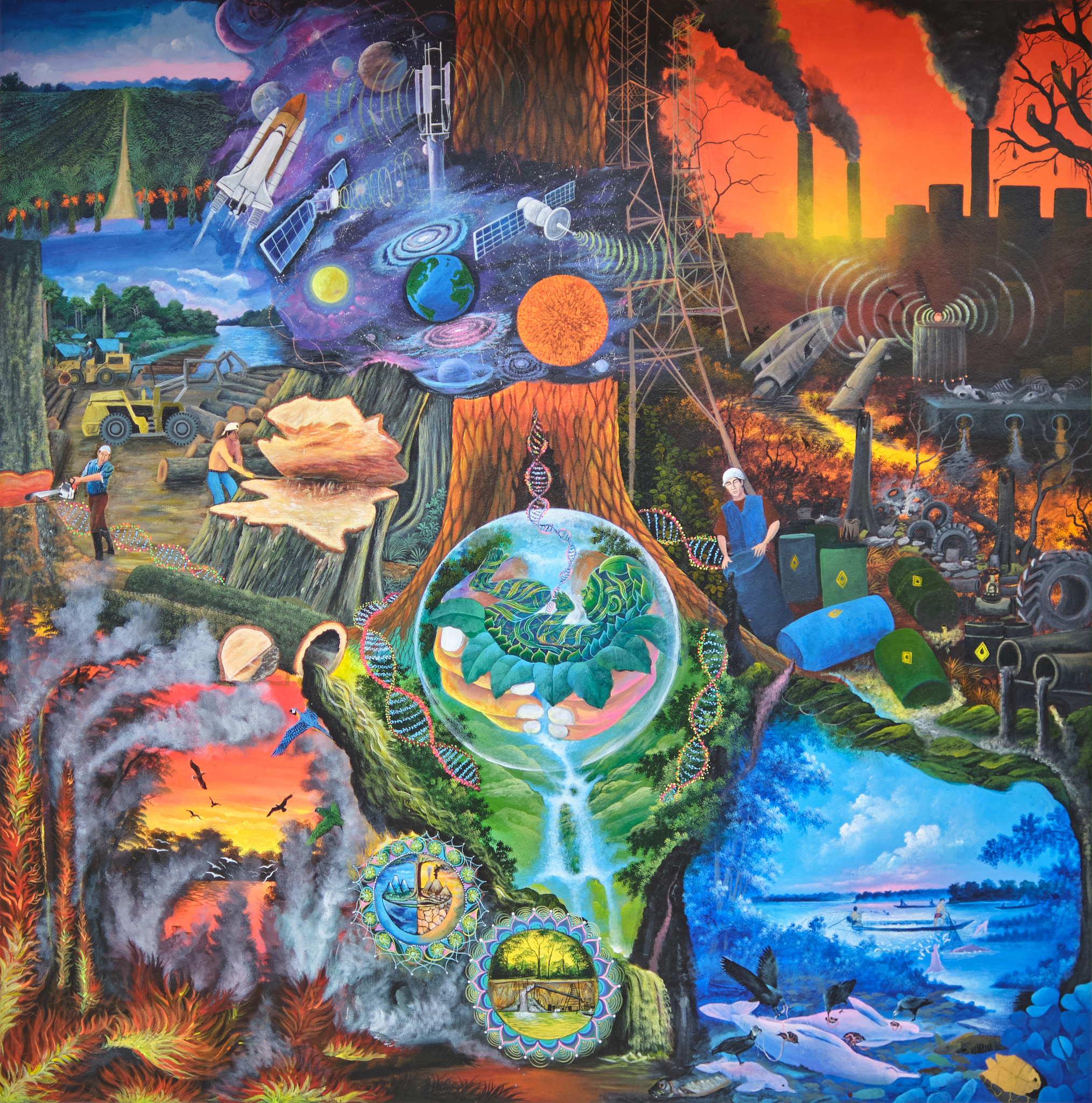 Las imágenes que finalmente se mostraron fueron la deforestación, la contaminación tecnológica y medioambiental, la minería, los efectos degradantes de la industria del aceite de palma, las aguas contaminadas y el resultado final para las generaciones futuras si estas amenazas continúan proliferando.