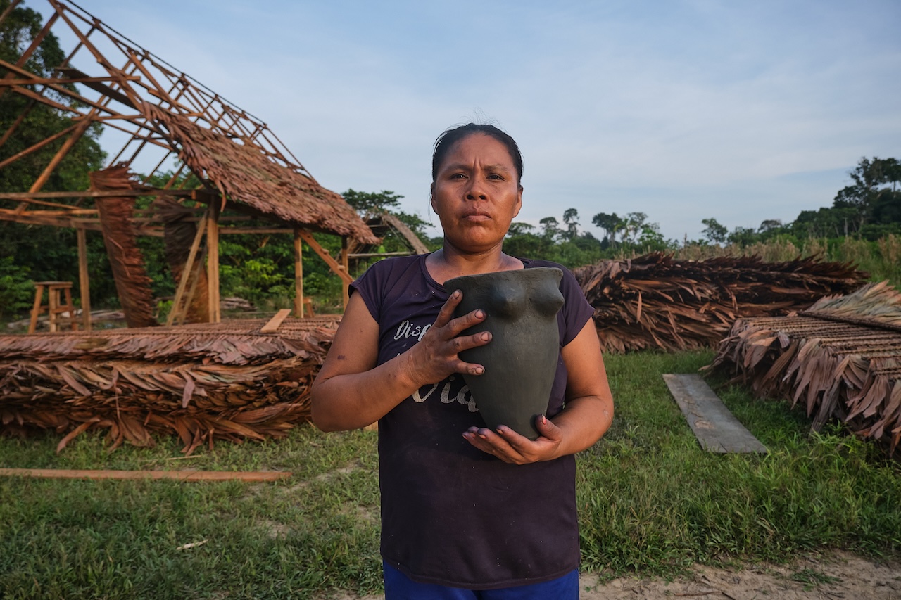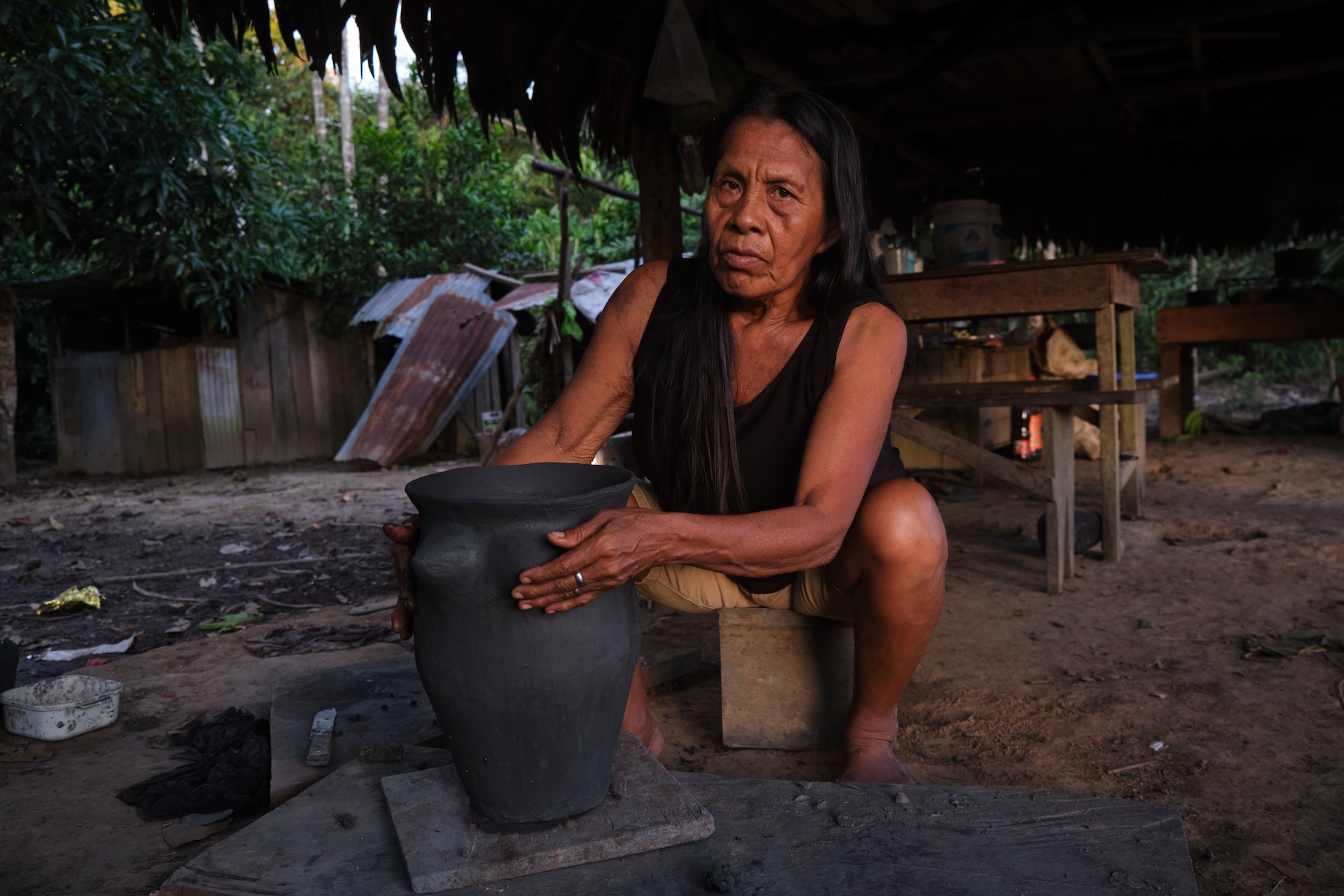 Las mujeres iskonawa fabrican diversos objetos con arcilla del río, utilizando dos tipos de arcilla que se adaptan a diferentes aplicaciones. La arcilla negra o«Cheje Mapu»se utiliza para la cerámica destinada a la cocina, y la arcilla blanca o«Mapu»se utiliza para crear recipientes que se utilizan para beber y almacenar líquidos.