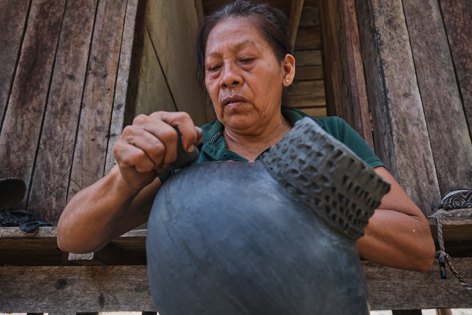 Las mujeres moldean la arcilla con las formas deseadas antes de esculpirla y alisarla con diversas herramientas obtenidas del bosque. Para construir las cerámicas cónicas, que se utilizan para almacenar bebidas, primero deben cavar un agujero en el suelo, forrarlo con hojas y luego moldear la arcilla dentro del agujero para crear la base cónica. A continuación, la arcilla se moldea con el diseño deseado utilizando herramientas como una espátula hecha de calabaza llamada «Masen» y una cáscara de plátano seca. El último paso antes de la cocción es pulir la cerámica con una espátula de maíz o «Heko» junto con una piedra de río especial o «Chejoroe».