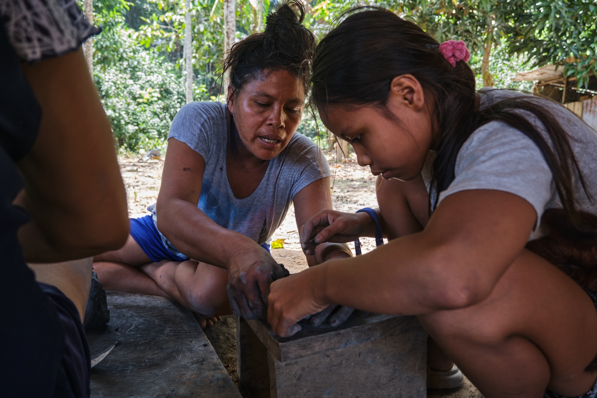 Un ingrediente clave en el proceso de fabricación de cerámica es un árbol llamado Apacharama (NC Hirtella sp.), del que extraen la corteza y la queman para obtener su ceniza. La ceniza se mezcla luego con la arcilla para garantizar la consistencia y durabilidad de la cerámica.
